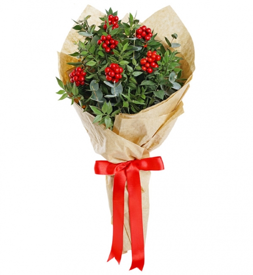 Kokina ve beyaz cipso çiçeklerinden oluşan çok hoş ve zarif bir bukettir. Sevdiklerinizi çok mutlu edeceğine inandığımız bir yeni yıl hediyesi altarnatifidir.