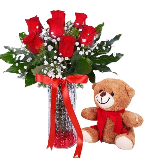 Kırmızı gül ile duygularınızı ifade ederken, ayıcık ile tatlı bir tebessüm oluşturmaya ne dersiniz? Bu aranjman ile sevdiklerinizi gülümsetmek garanti. Not: Güllerin renk tonları ve boyutları mevsim şartlarına göre değişkenlik gösterebilir.