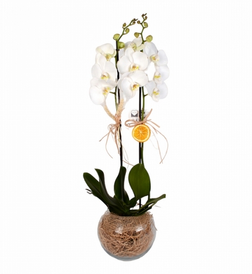 1. Sınıf ithal phalaenopsiz orkide kullanılmıştır. Çiçek yüksekliği yaklaşık 60 cm dir.