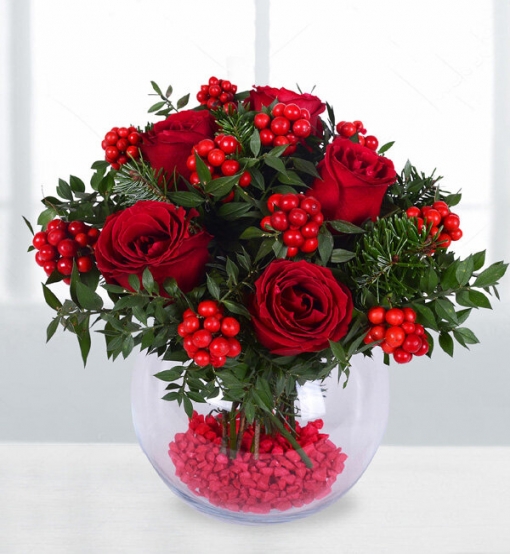 Kırmızı Güller ve Kokina Yılbaşı Çiçeği
