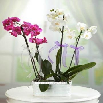 Phalaenopsis Orkide : Çift Dallı Mor ve Çift Dallı Beyaz