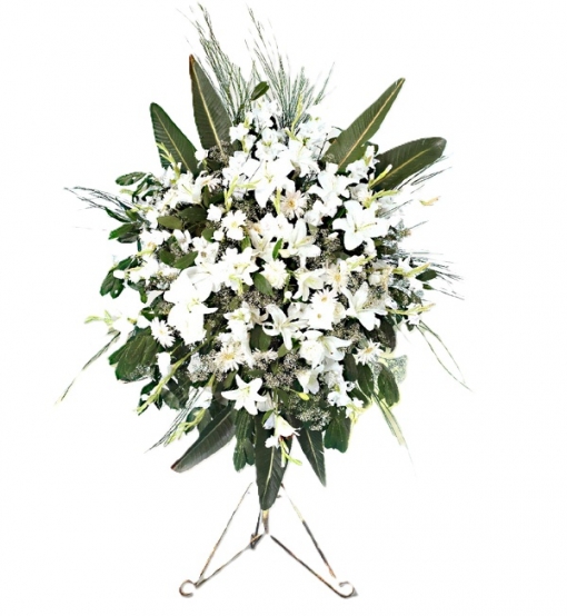 Beyaz lilyum, beyaz gerbera ve karışık beyaz mevsim çiçekleri ile hazırlanmış açılış, düğün ve nikah çiçeği.