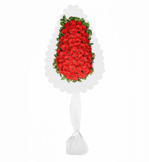 Kırmızı yapay gerbera ile hazırlanmış tek katlı açılış ve düğün çelengi.