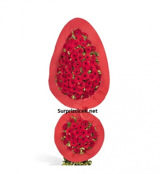 "Her birisi birbirinden güzel 93 tane kırmızı gerbera çiçeklerinin aranjmanı ile eşsiz bir görsel şölen sunan Destansı Sevgi Kırmızı Gerbera Kutlama Çelengi, 2 metrelik boyutu ile de dikkatleri üzerine çekiyor.