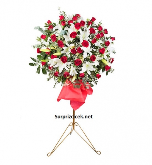 "En özel anlarından yanlarında yer alamadığımız sevdiklerimiz için tercih edilebilecek en şık hediyelerden olan Sevgi Gülümsemesi Ferforje Çiçek Aranjmanı içindeki 41 kırmızı gül ve beyaz lilyum çiçekleri ile eşsiz bir sunum sağlıyor.