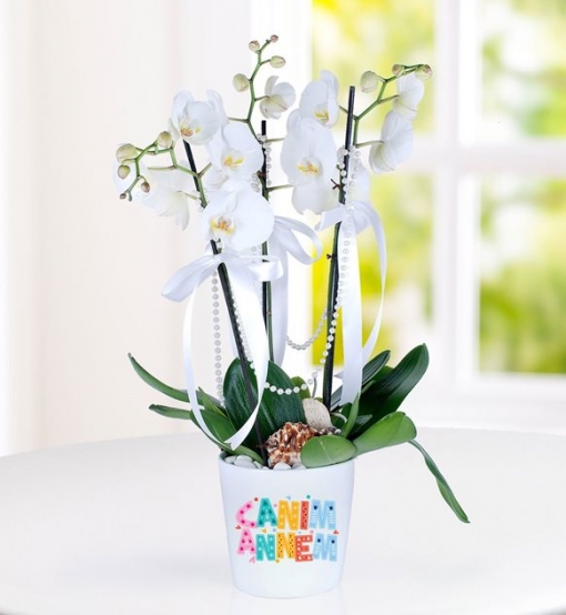 Anneler için çiçek seçerken en dikkatli olduğumuz konu onlara özel bir çiçek bulmaktır. En sevdikleri çiçekler ile hazırlanmış buketler veya anneler için hazırlanmış çiçekler bu gibi zamanlarda sipariş edebileceğimiz çiçekler arsındadır. Canım Annem Üç Dal Beyaz Orkide, özel stickerlı saksı içerisinde yer alan 3 dal beyaz orkide ile annelerinize özel bir sürpriz yapmak içim hazırlandı
