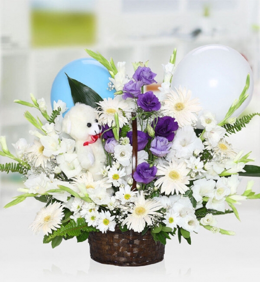 Lisyantüs Papatya Sepeti Balon ve Ayıcıklı