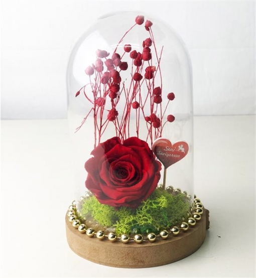 Boyutu 11x20 cm olan bu ürünümüz, solmayan şoklanmış gül herhangi bir bakıma ihtiyaç duymadan su, güneş ışığı ve direkt temastan korunduğu sürece 2 sene boyunca canlılığını korumaktadır. Cam içerisindeki bu gül bulunduğunuz ortama renk ve güzellik katacaktır.