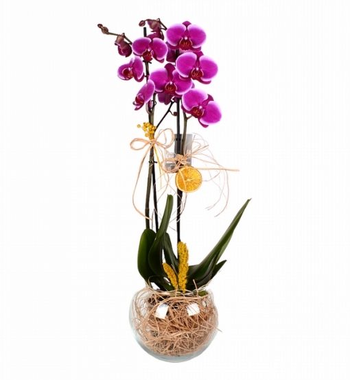 1. Sınıf ithal phalaenopsiz orkide kullanılmıştır. Çiçek yüksekliği yaklaşık 60 cm dir.