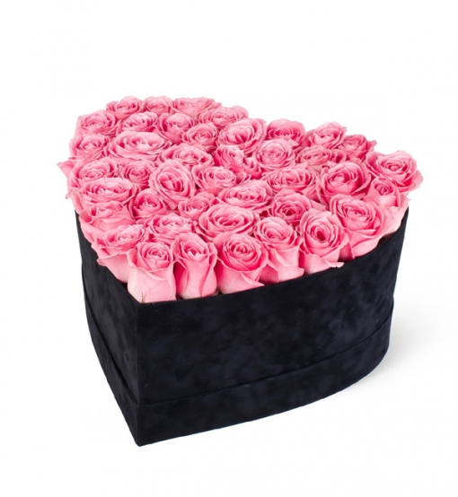 Corazón Negro, yani siyah süet kalp kutu içinde sunulan bu zarif aranjman, 45 adet özenle seçilmiş pembe gül ile derin sevginizin en özel halini ifade eder. Bu estetik tasarım, hem duygusal mesajınızı etkili şekilde iletir hem de unutulmaz bir hediye deneyimi sunar.