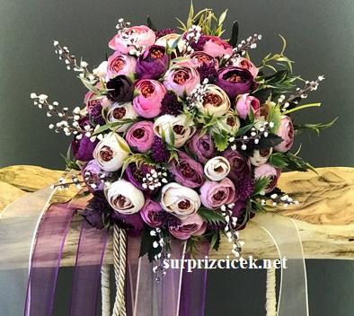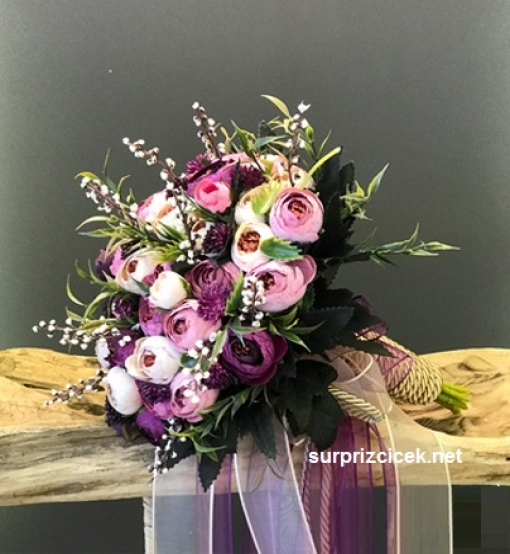 Yapay Erengüller ve ara garnütürler ile hazırladığımız gelin buketi modelimiz. Gelin buketini uzun yıllar hatıra olarak saklamak, salona ayrı bir enerji katmak isterseniz yapay erengüllü ypay buketimizi sizin için hazırlayalım. Mor, pembe, gülkurusu ve krem tonlarının uyumlu kombinasyonuyla görselliği zenginleştirilen gelin çiçeğini tek tıkla sipariş verebilirsiniz. Yapay gelin çiçeği siparişlerinizi Bursa adrese teslin , Türkiye'nin her yerine de kargo ile 1-3 iş günü içerisinde elinizde olacak şekilde gönderim yapıyoruz