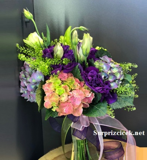 Gelin adaylarının tatlı telaşına yardımcı olma için yeni gelin el çiçeği modelleri hazırladık. İçerisinde canlı ortanca, lisyantus çiçeklerinin yer aldığı gelin el demeti yeşilliklerle renklendirilerek alt kısmı halat ve kurdelalalrla süslendi. Gelinliğin en büyük aksesuarı olan el çiçeği modellerinde sadece Sürpriz Çiçek farkı ile özgün modeller sunuyoruz. Gelin çiçeği siparişlerinizi ister netten, isterseniz de webden iletebilirsiniz.