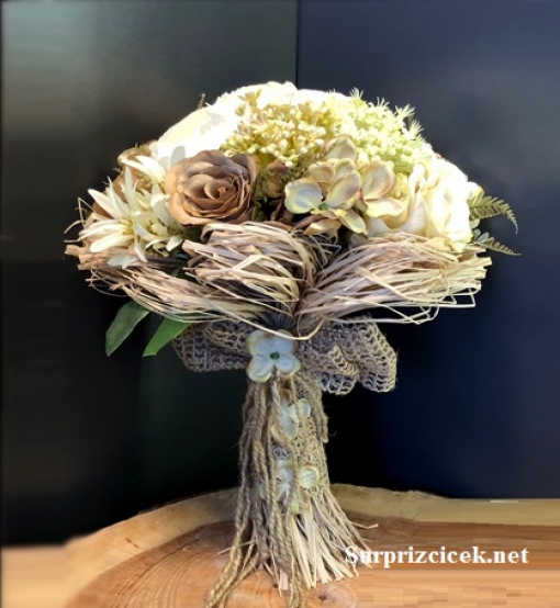 Krem rengi yapay şakayıklar, güller ve soft tonlarda ara garnitürler kullanarak hazırladığımız yeni gelin el çiçeği modelimiz. Uyumlu tonlarda ürünlerin tamamladığı şık olduğu kadar sade gelin el çiçeği ile en güze fotoğraf karelerini yakalayabilirsiniz. Uzun yıllar anı olarak saklayabileceğiniz gelin çiçeğiniz evinizin dekorasyonunu da tamamlayacaktır. Yapay gelin el demeti modellerimizi inceleyerek netten veya telefonla siparişlerinizi iletebilirsiniz. Yapay gelin çiçeklerimiz Bursa dışına da kargo ile 1-3 iş günü içerisinde elinizde olacak şekilde gönderim yapılabilir.